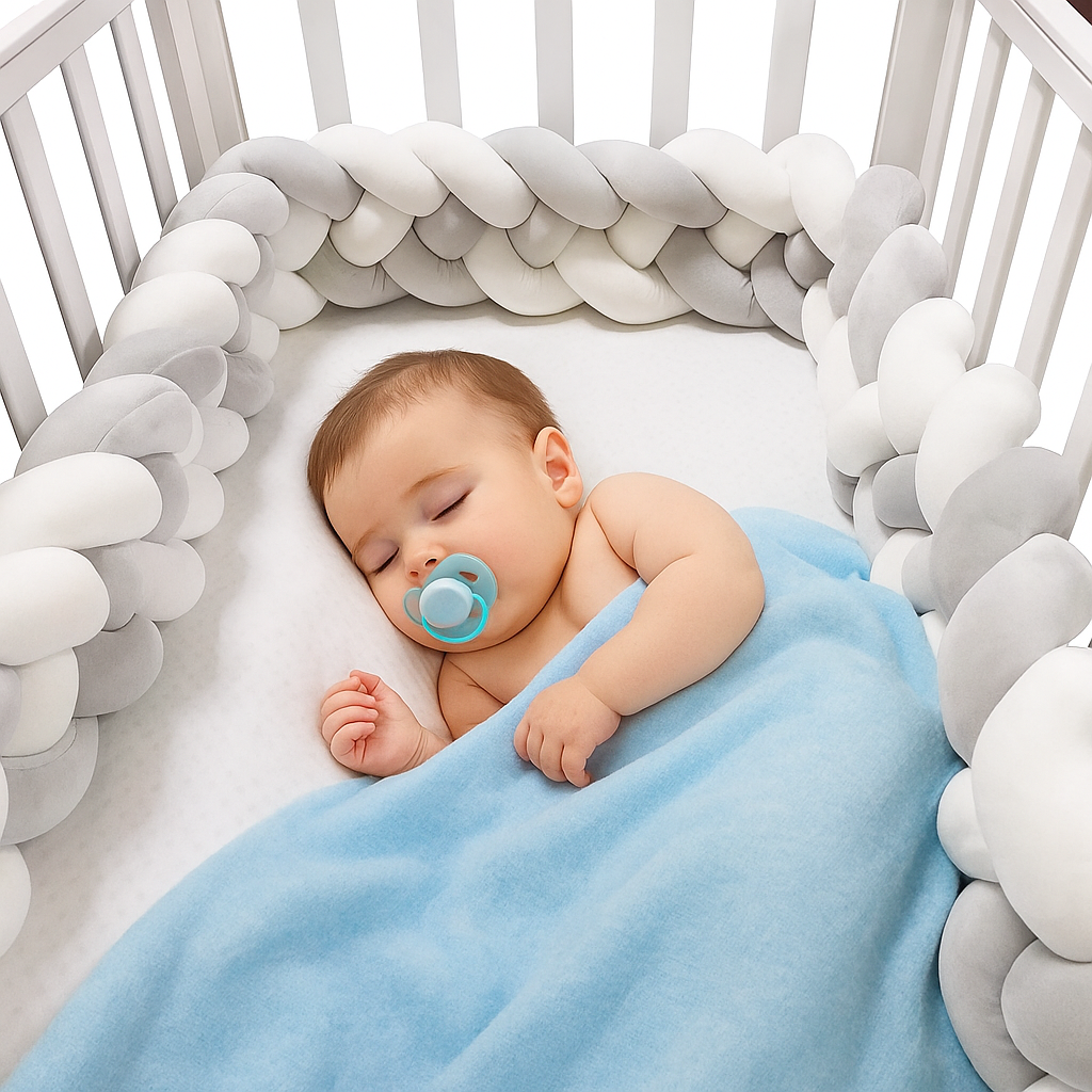 Imaginez-vous bientÎt, admirant votre tout-petit qui dort paisiblement, entouré de la douceur protectrice de sa tresse de lit, sans plus jamais vous inquiéter des barreaux froids et durs.